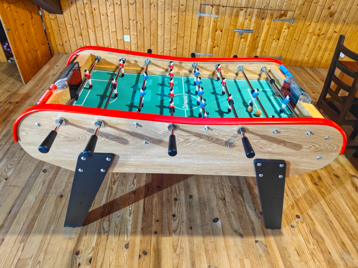 De l'autre côté un babyfoot & table avec un Carrom indien.