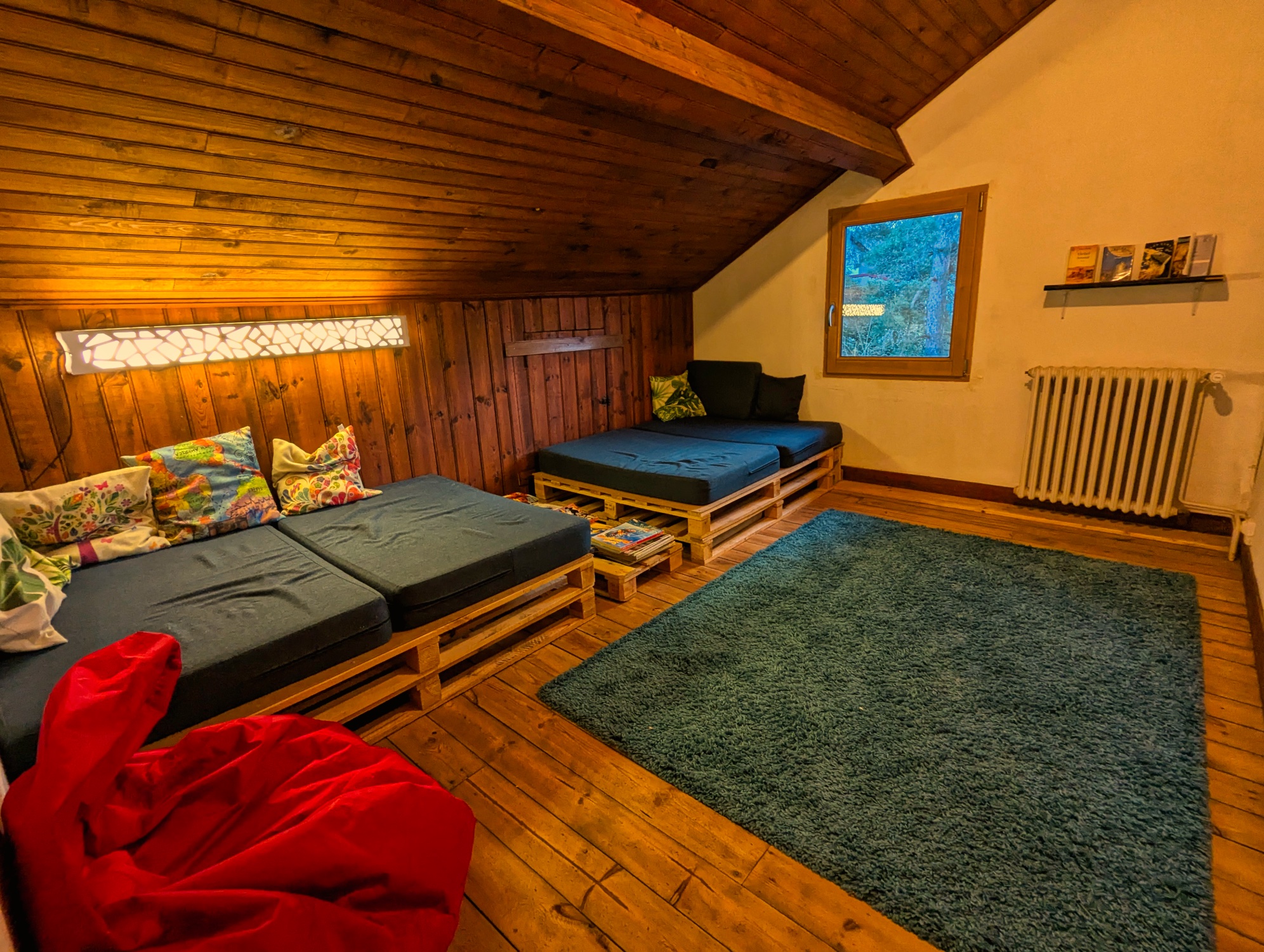 - Un salon avec 2 petits canapés palettes 1m160x1m20